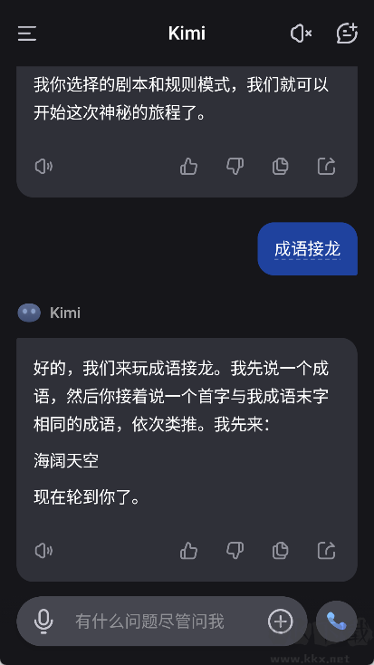 3. 使用者還能請(qǐng)求Kimi供應(yīng)趣味互動(dòng)活動(dòng),譬如成語(yǔ)接續(xù)或詩(shī)歌應(yīng)答。