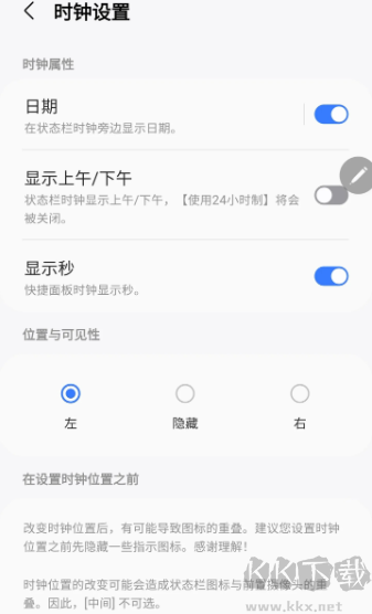 5、于“時(shí)鐘配置”內(nèi)修改時(shí)間形式(12小時(shí)/24小時(shí)制)等。