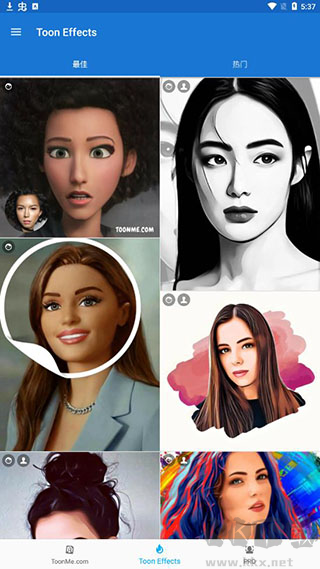 1、在toonme.com界面左右滑動(dòng)選取心儀的畫(huà)面效果。