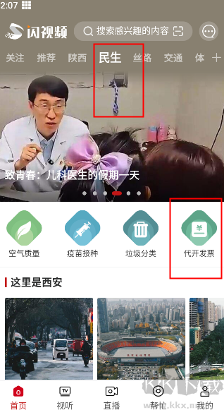 1、首先,打開軟件,在首頁點(diǎn)擊民生,然后點(diǎn)擊“代開發(fā)票”按鍵;