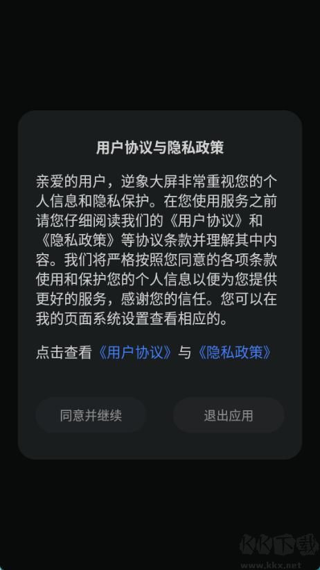1.啟動逆象大屏應(yīng)用后,點按同意并繼續(xù)