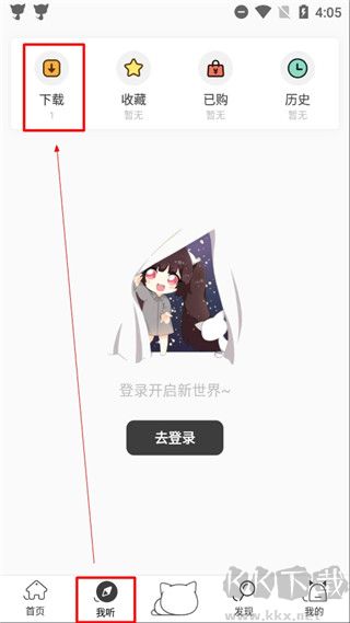 3、進(jìn)入“我的收聽”頁(yè)面,選擇“下載”欄目;
