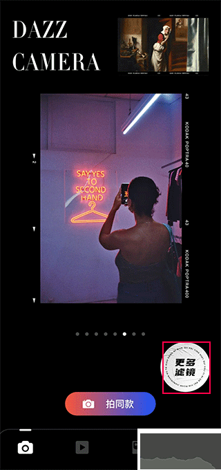 3、若在眾多濾鏡中難以快速找到心儀款式,也可以通過自行搜索的方式查找,找到合適的濾鏡后,點擊 “拍同款” 選項,就能立即使用該濾鏡進行拍攝或修圖。
