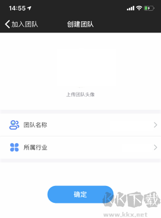 2、填寫團(tuán)隊(duì)頭像、團(tuán)隊(duì)名稱、所屬行業(yè)后,點(diǎn)擊確認(rèn)即可成功創(chuàng)建。