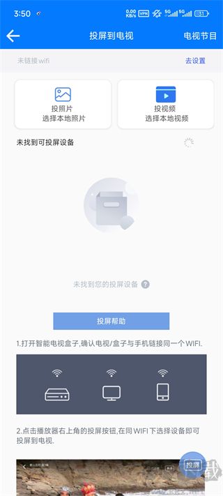1、請(qǐng)將手機(jī)與電視/盒子等設(shè)備連接至同一WiFi網(wǎng)絡(luò)