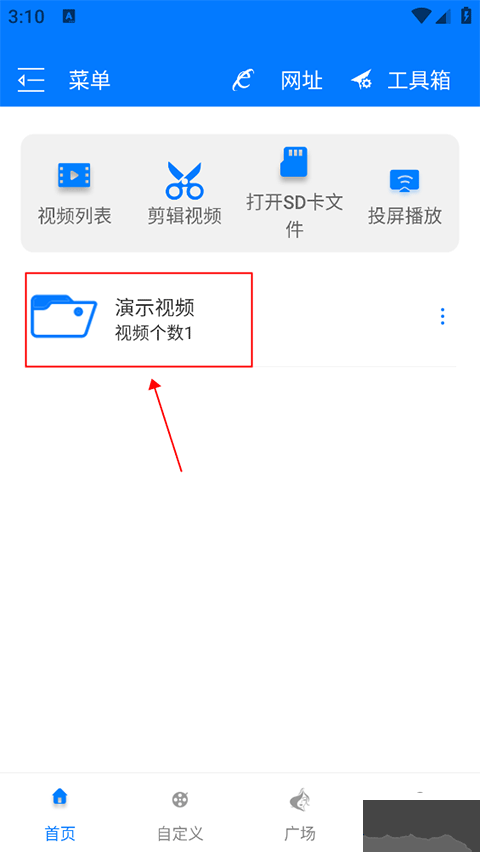 2、打開(kāi)應(yīng)用后,在首頁(yè)選擇已導(dǎo)入的視頻進(jìn)行播放