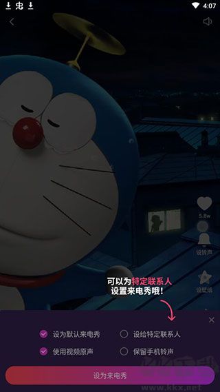 5、稍作等待后會出現(xiàn)設(shè)置選項,點擊“設(shè)為來電秀”即可完成設(shè)置。