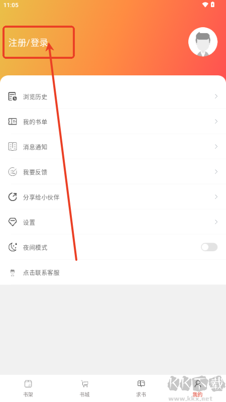 1、啟動橙子閱讀應(yīng)用,點擊界面底部的"個人中心"。