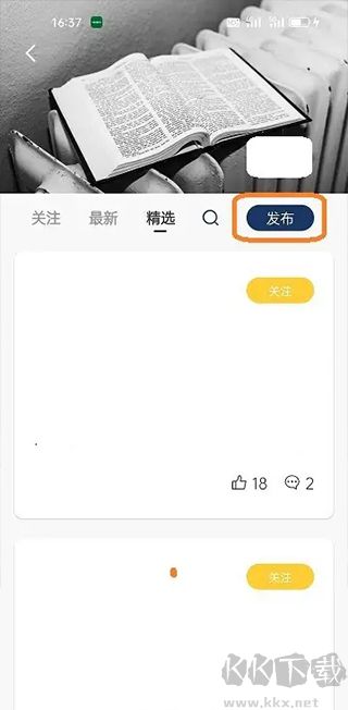 切換到精選頁面以后點擊閑彩敗【發(fā)布】。