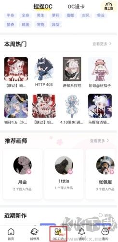 3、OC工坊界面:這邊是關(guān)于自設(shè)和OC的模板,使用者可以在這里挑選,還有不少優(yōu)秀的畫師;
