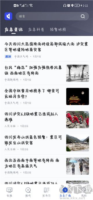 3、進(jìn)入應(yīng)急廣場(chǎng),用戶可以在里了解到很多地區(qū)的自然災(zāi)害等新聞。