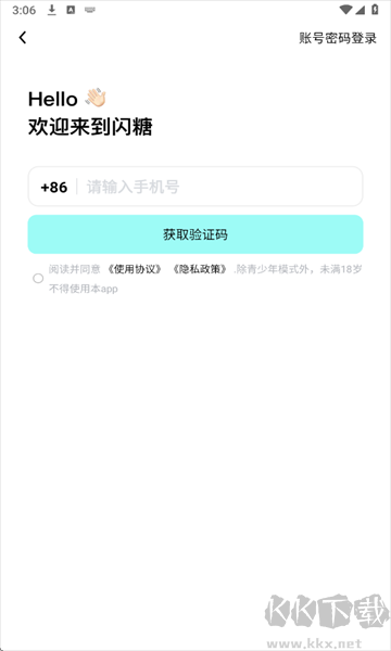1、打開(kāi)閃糖應(yīng)用,選擇“手機(jī)號(hào)登錄”