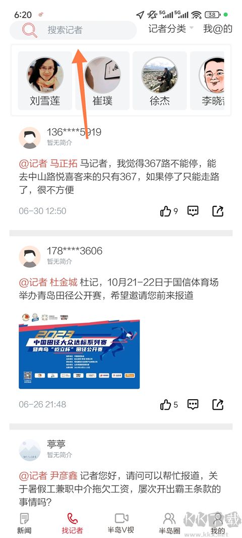 半島新聞App怎么找記者?
