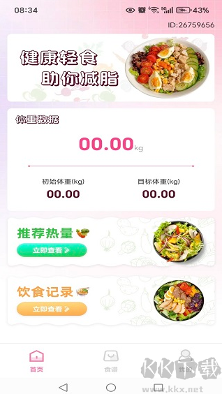 1、首頁提供體重記錄與食物熱量查詢功能,方便快速獲取數(shù)據(jù);