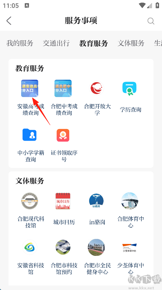 3、點擊“教育服務(wù)”板塊的“安徽高考成績查詢”。