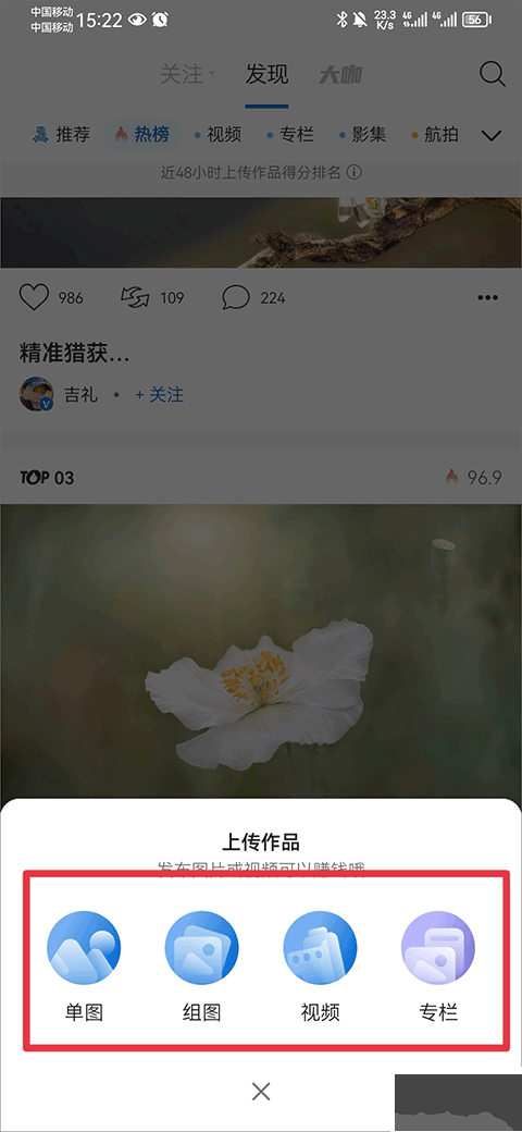 2、接著挑選你要上傳的是單圖、組圖、視頻還是專(zhuān)欄。