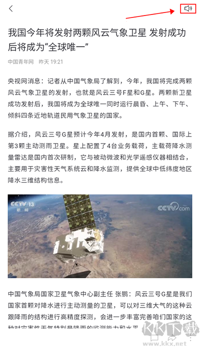 2、點(diǎn)擊你要想閱讀的文章,點(diǎn)擊界面右上角的“小喇叭”圖標(biāo)就可以聽新聞啦。