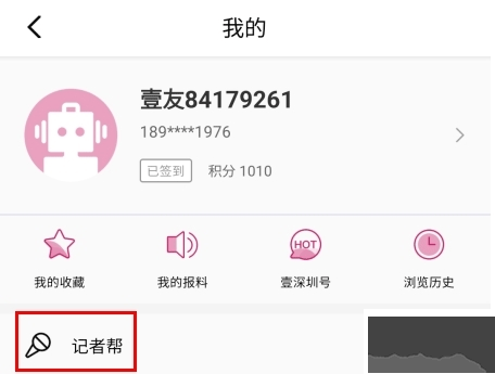 2、進(jìn)入個人頁面后點擊記者幫圖標(biāo)。