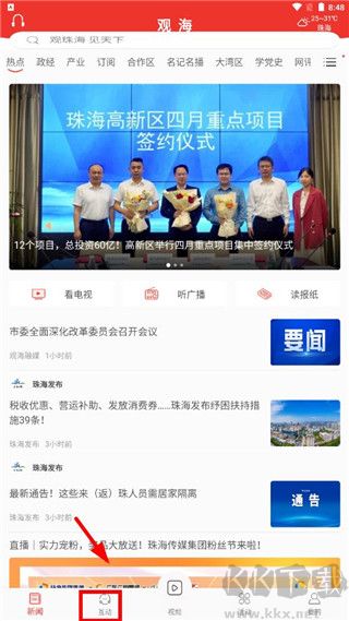 1、下載并安裝觀海融媒,打開進(jìn)入軟件點(diǎn)擊【互動】