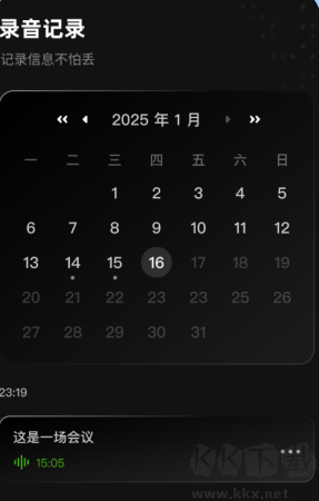 2、以日歷形式展示每日錄音記錄,按日期精準(zhǔn)查找歷史音頻,無需在大量文件中手動(dòng)搜索