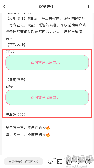 4、在評論區(qū)任意留言后,即可顯示應(yīng)用下載鏈接;