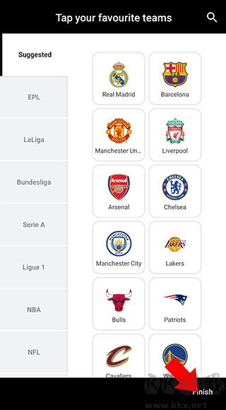 4、選擇聯(lián)賽之后就是選擇想要關注隊伍,選擇之后會優(yōu)先推送提醒,這個同樣根據(jù)個人喜好來