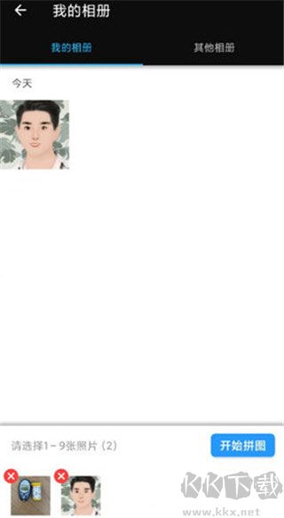 1、首頁點擊"拼圖",從相冊中選擇1-9張圖片;