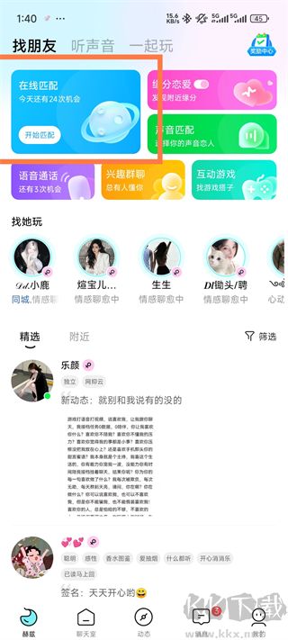 1、【語音匹配】 在線連麥交朋友,隨機(jī)配對暢聊。高冷?優(yōu)雅?或許是個愛演的開心果!快樂源泉就在這里,甜甜的戀愛觸手可及;