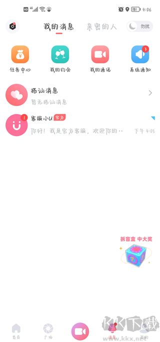 7、“消息”頁面可查看他人發(fā)來的搭訕信息;