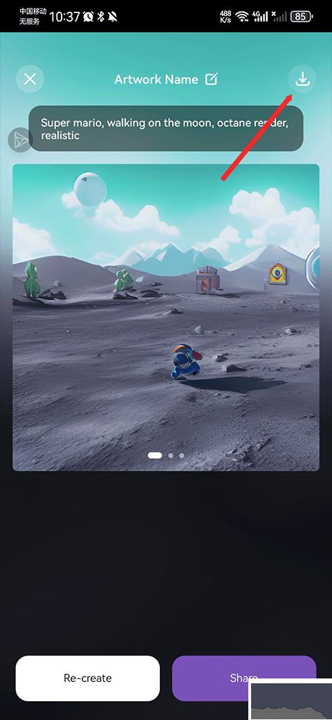 5、最后軟件就會(huì)為你生成 AI 圖片,滿(mǎn)意的話(huà)可以點(diǎn)擊右上角下載按鈕把圖片保存到相冊(cè)。