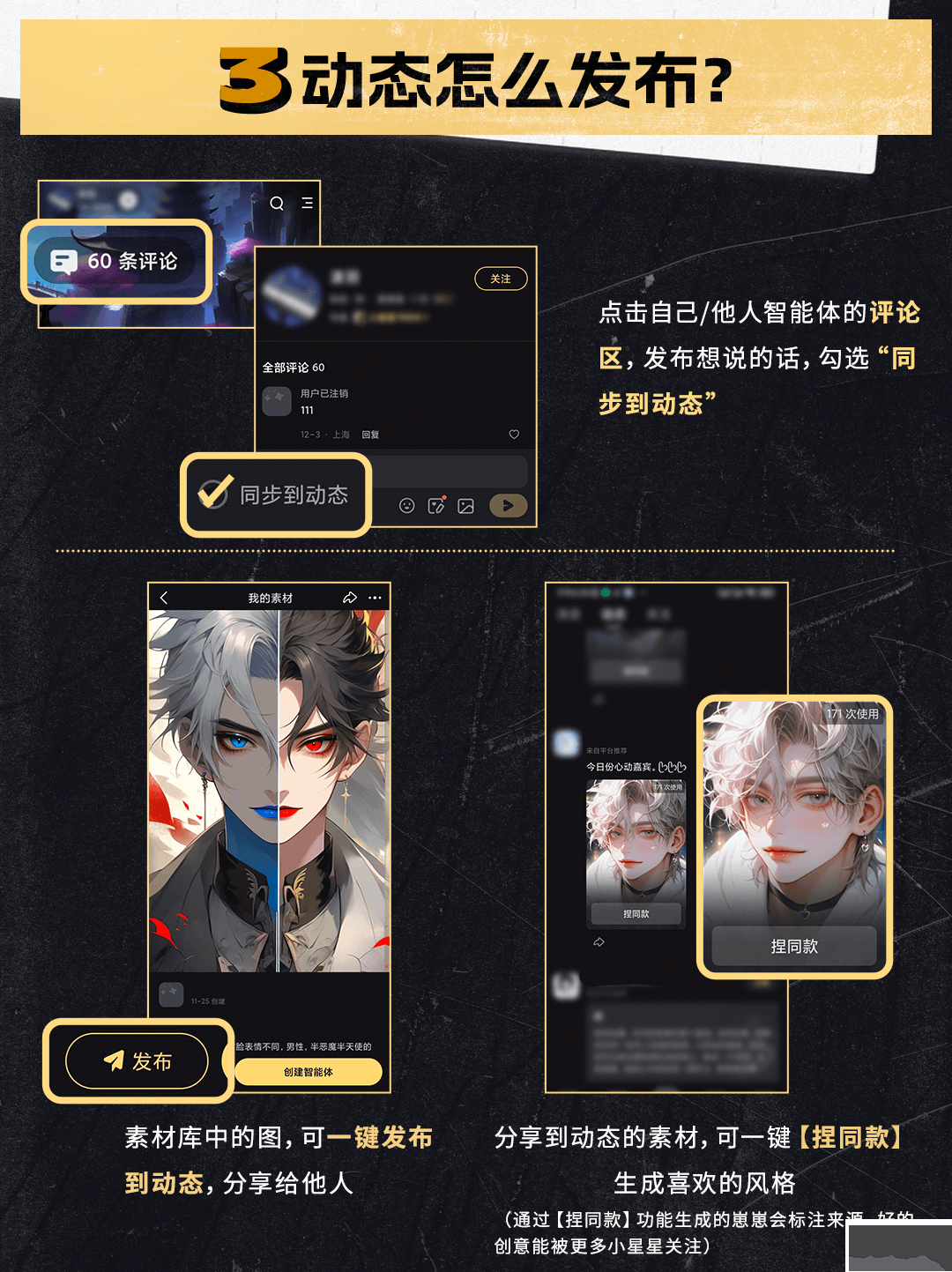 通過簡(jiǎn)單描述即可自主設(shè)定智能體的形象、聲音、人設(shè)與技能。用戶還可與更多AIGC愛好者互動(dòng),共同建設(shè)豐富多元的智能體社區(qū)。