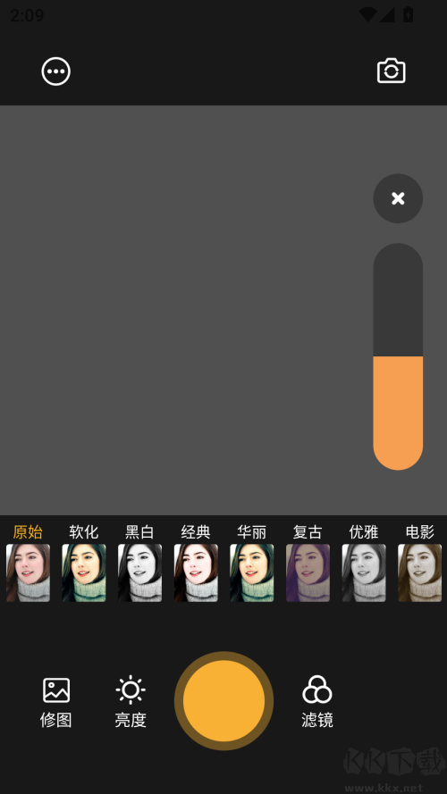 2、拍攝時(shí)可選擇多種濾鏡,并實(shí)時(shí)調(diào)整亮度等參數(shù),獲取最自然的成像效果。