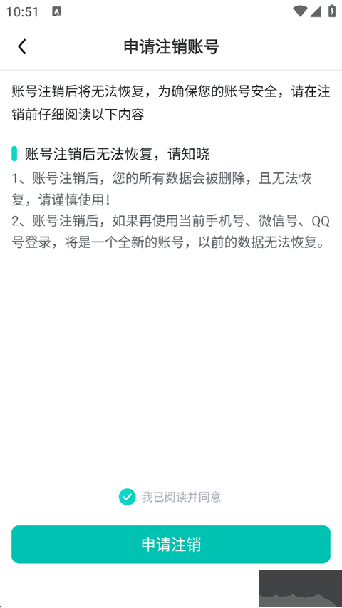 4、點擊申請注銷,輸入手機號驗證碼完成注銷。