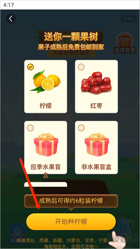 2、進(jìn)入后,選擇一個自己喜歡的水果,開始種植。