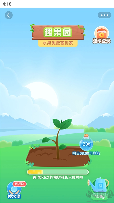 3、種植樹苗成功就可以免費獲取水果,水滴通過做任務(wù)完成。