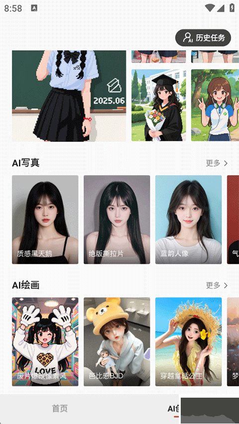 4、打開下方的AI創(chuàng)作,還有官方提供的各種AI模板,只需要導(dǎo)入圖片,一鍵生成同款。
