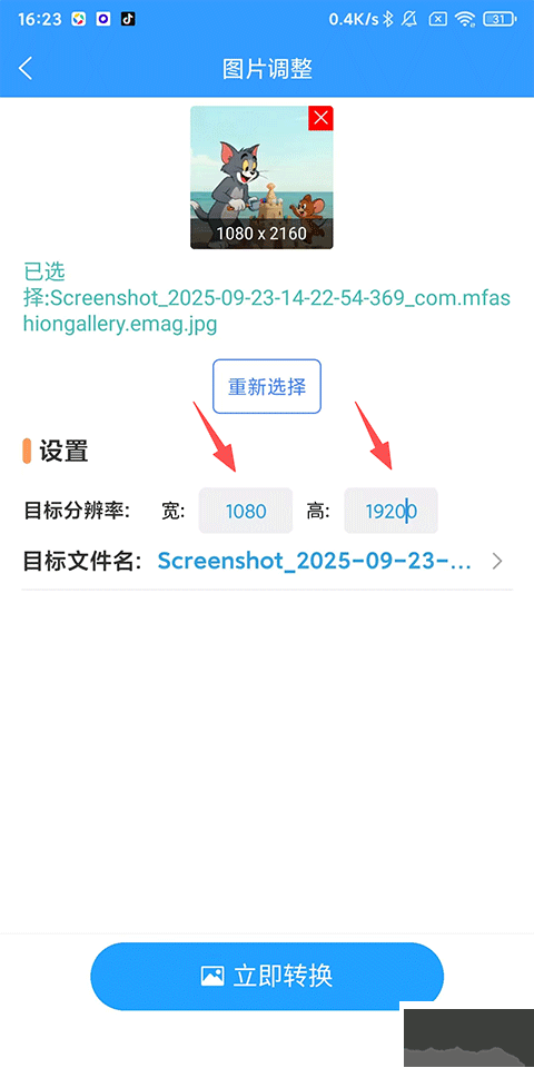 3、設置目標分辨率,點擊下方【立即轉(zhuǎn)換】!