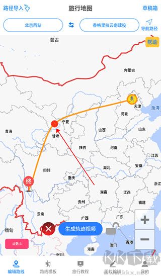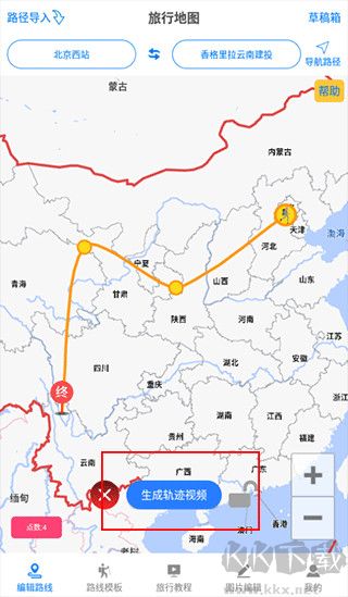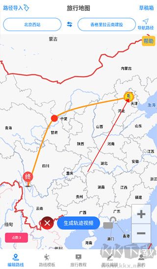 2、通過視頻地圖的形式向朋友展示你的旅程,方便快捷地制作專屬于自己的出行軌跡路線。