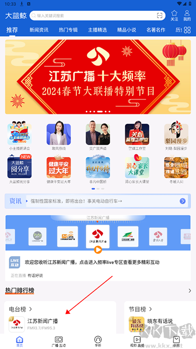 大藍(lán)鯨app是一款視聽互動(dòng)服務(wù)軟件,擁有江蘇廣播電視臺(tái)的優(yōu)質(zhì)內(nèi)容,可以在線收聽各類廣播節(jié)目、歌曲、小品等音頻資源。還提供大量精品視頻內(nèi)容,不局限于單一廣播形式,豐富用戶的精神生活。它實(shí)時(shí)推送江蘇本地時(shí)事新聞,還涵蓋國(guó)內(nèi)外時(shí)事、財(cái)經(jīng)動(dòng)態(tài)、娛樂八卦等全面的新聞資源,能滿足多數(shù)用戶獲取新聞的需求。需要的朋友快來下載試試吧!