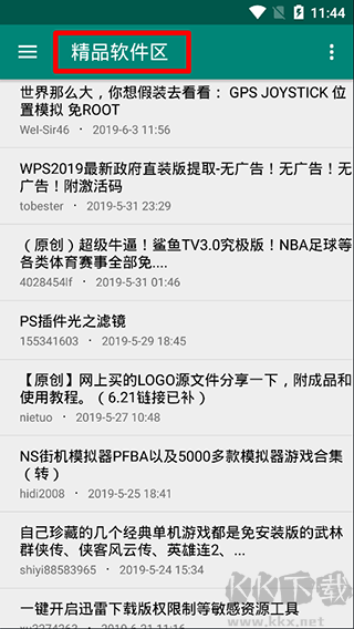 3、進(jìn)入精品軟件區(qū)后,系統(tǒng)會(huì)按發(fā)布時(shí)間順序展示各類主題帖子,方便查閱最新內(nèi)容。