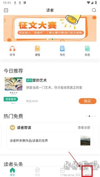 1、進(jìn)入讀者app,點(diǎn)擊下方“我的”頁(yè)面。