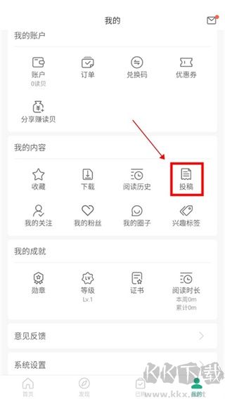 2、在我的內(nèi)容板塊點(diǎn)擊投稿。