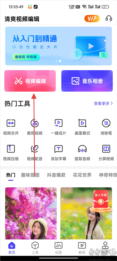 1. 導(dǎo)入照片或視頻片段,一鍵完成卡點(diǎn)視頻。