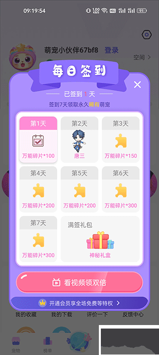 2、在每日打卡頁面,還能領取通用碎片和唐三角色。