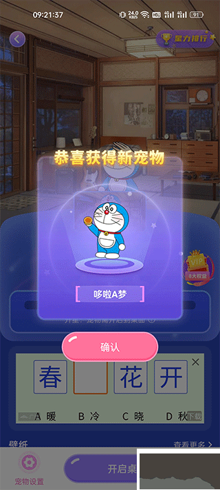 3、在此處我們選擇已獲取的新寵物哆啦 A 夢。