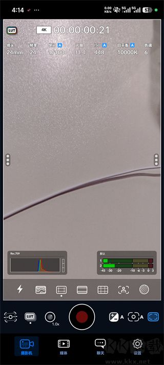 4、根據(jù)拍攝環(huán)境和個人風(fēng)格,對亮度、曝光、色溫等參數(shù)進(jìn)行微調(diào),調(diào)整滿意后,點擊中間的錄制按鈕開始拍攝。