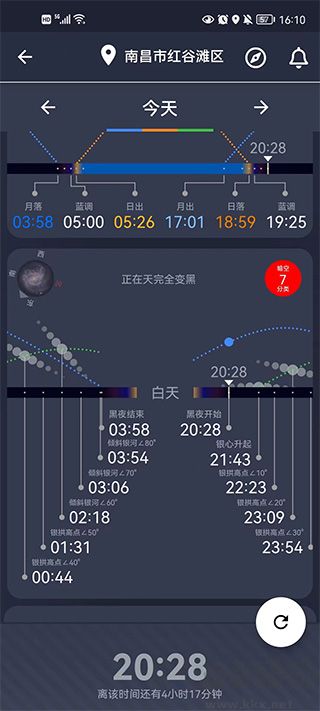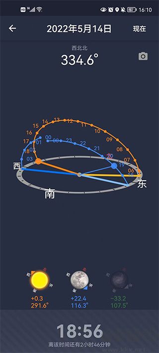 涵蓋日出日落時刻、月出月落時刻、晨昏光線、黃金拍攝時段、藍(lán)調(diào)拍攝時段、夜間時段、日月方位、日月檢索功能。