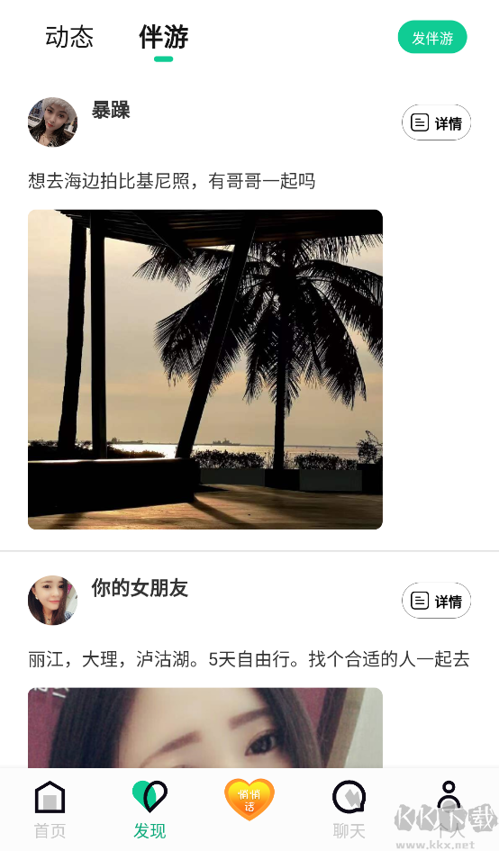 2、app還有伴游板塊,有想出去旅游但是找不到小伙伴的可以在這里試一試。