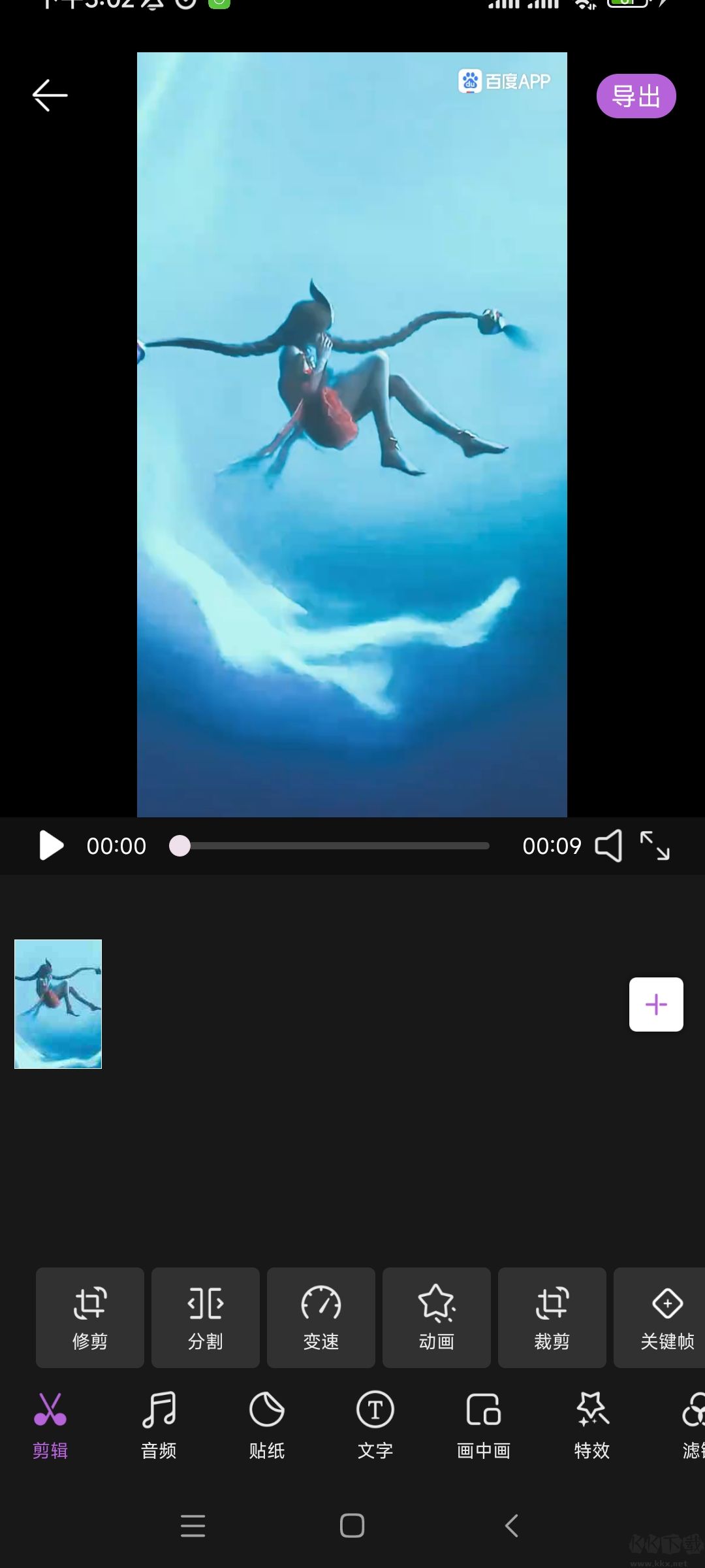 2、添加完視頻后,如圖,進入以下頁面,有許多功能供你使用,向左滑動還有更多功能。