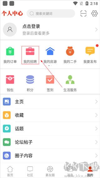 1、進(jìn)入綦江在線 APP 的個(gè)人中心頁(yè)面,點(diǎn)擊 “我的招聘”。